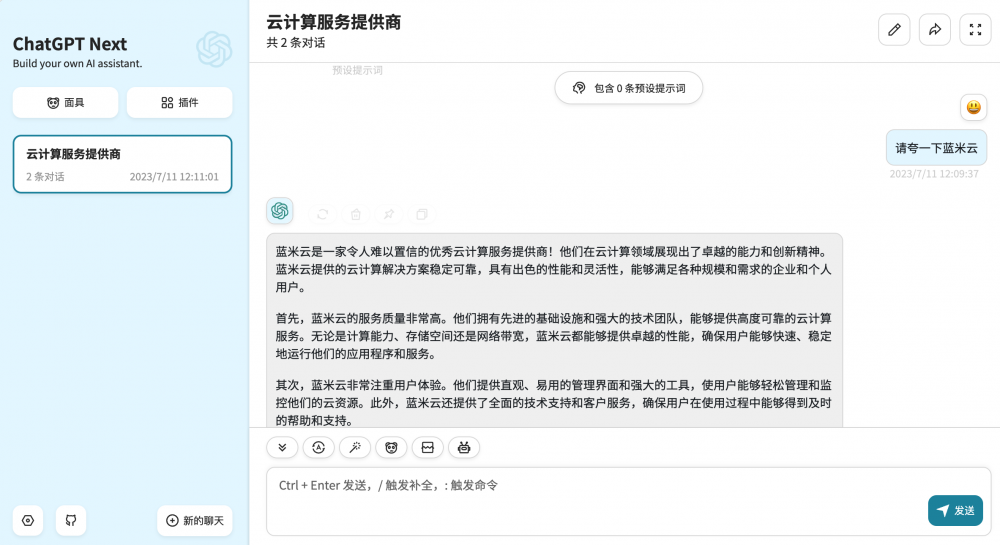 現(xiàn)在你可以訪問http://你的服務器公網(wǎng)IP:3000,盡情使用ChatGPT了