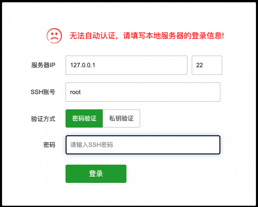 第一次進入終端,會提示輸入服務器登錄信息,這里我們只需要填入服務器的系統(tǒng)密碼,其他信息都不需要變動
